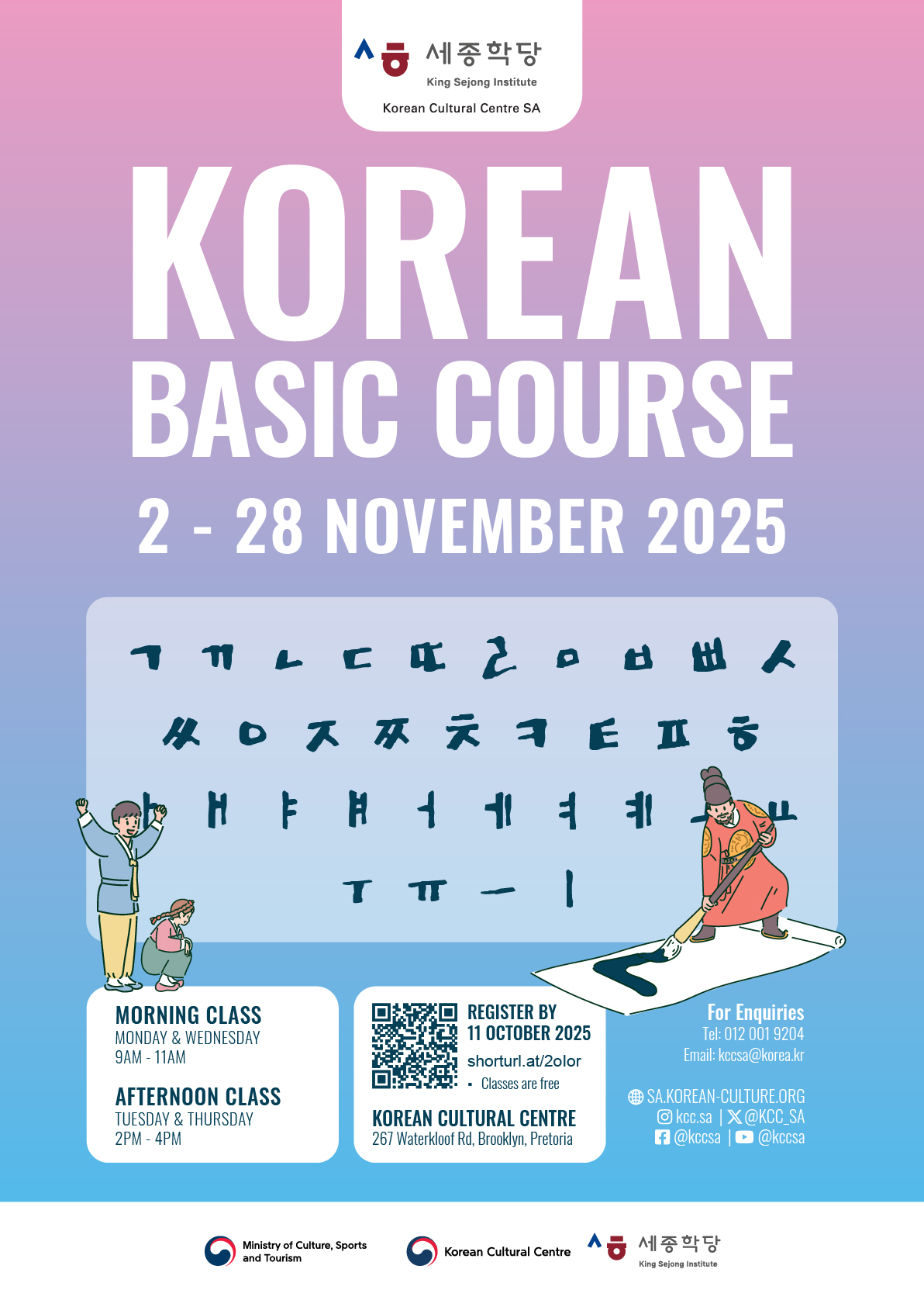 This Korean Basic Course is designed for complete beginners with little or no prior knowledge of Korean. Over four weeks, you’ll learn the Korean alphabet (Hangeul), practice basic pronunciation, and pick up simple expressions for everyday use. By the end of the course, you’ll be able to read and write simple Korean words and start building a foundation for further study.