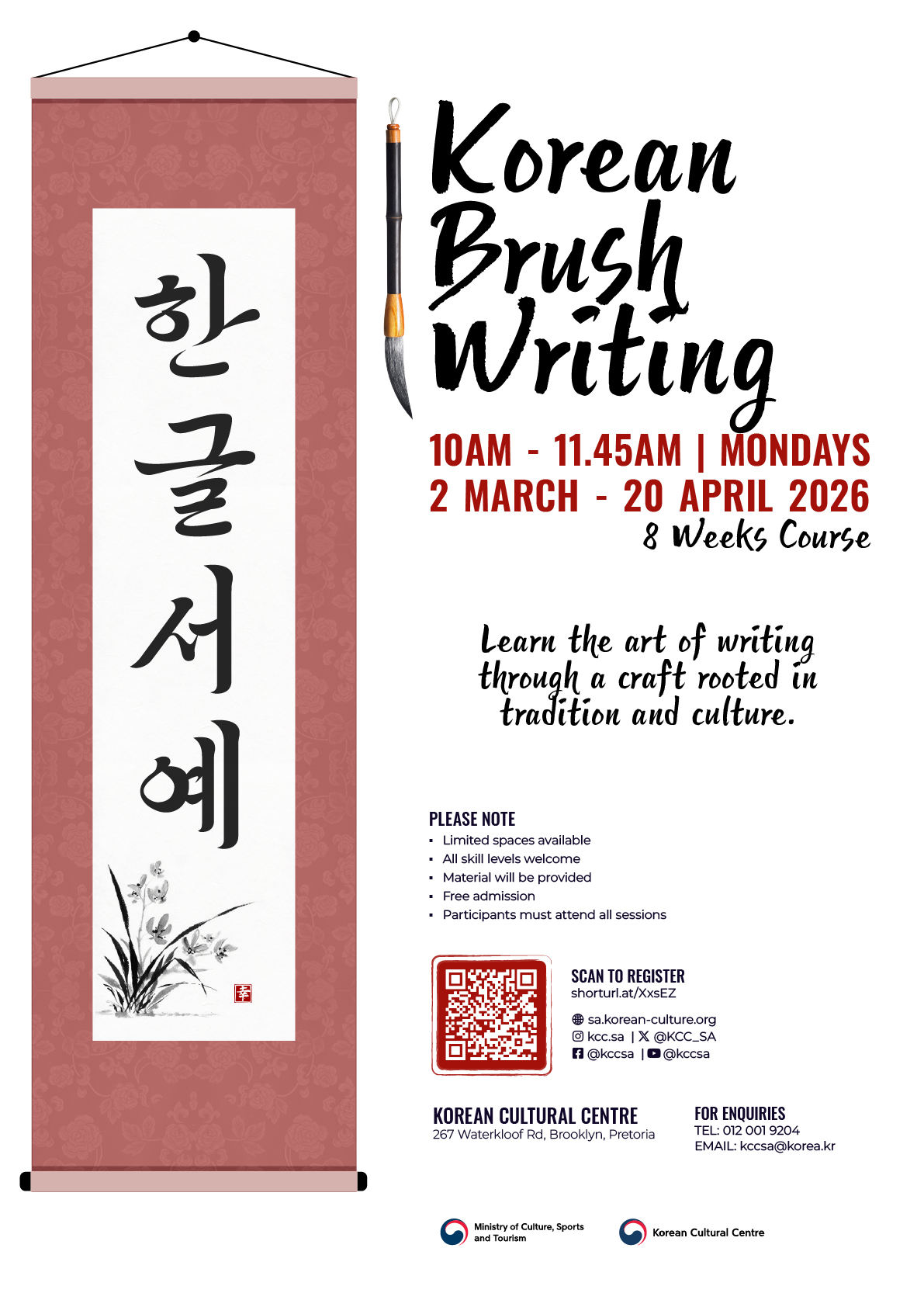 Join us at the Korean Cultural Centre in Pretoria for an 8-Week Short Course on Korean Brush Writing!