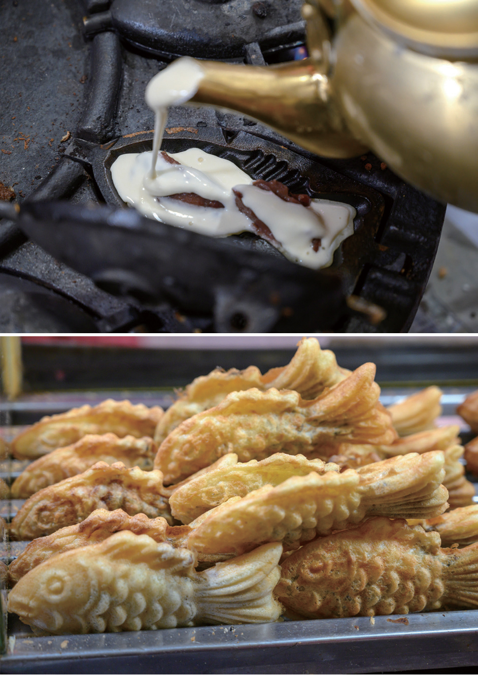 밀가루 반죽에 팥소를 넣고 붕어 모양의 금속 틀에 구워낸 빵. |
